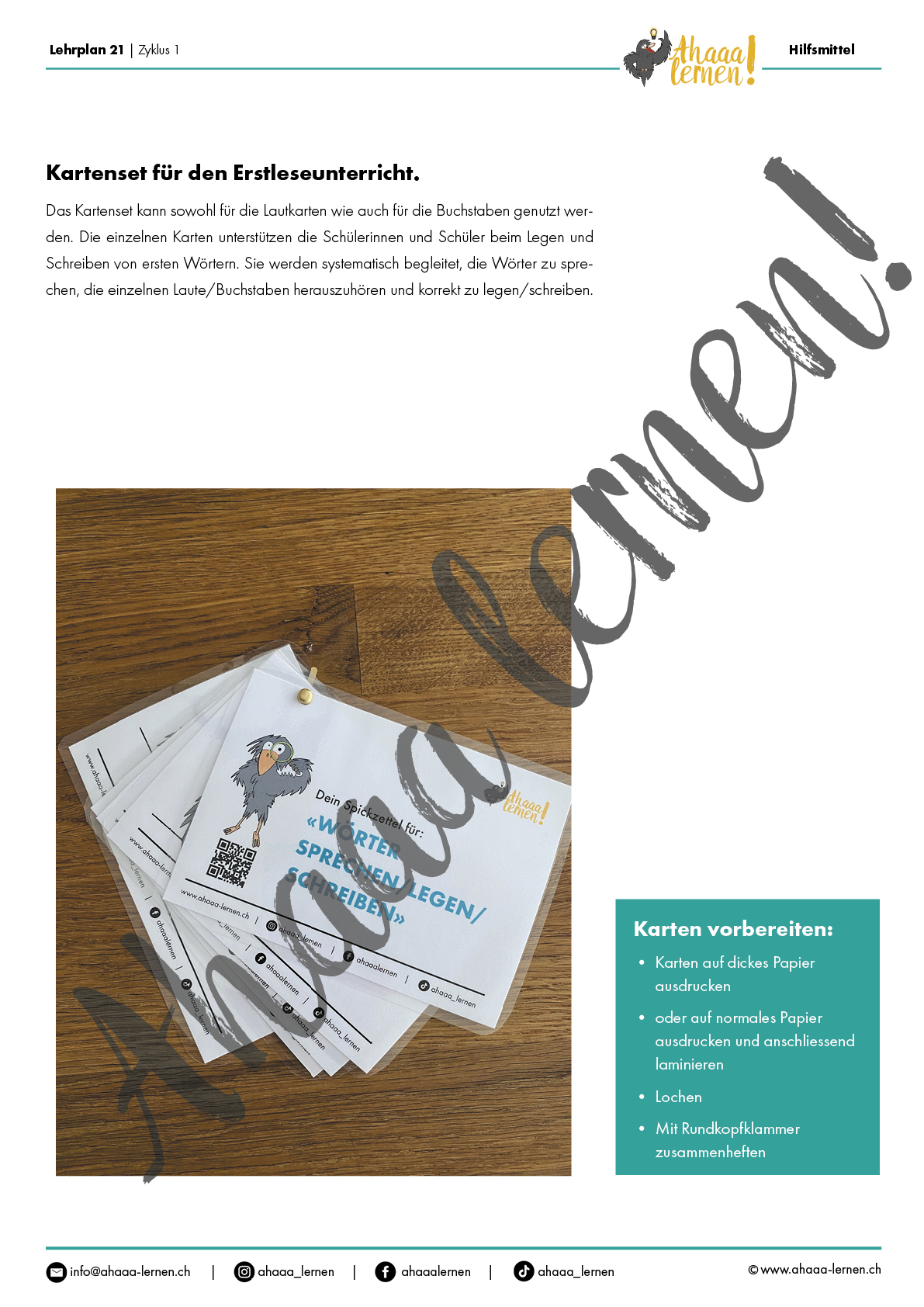 Das Kartenset kann sowohl für die Lautkarten wie auch für die Buchstaben genutzt werden.