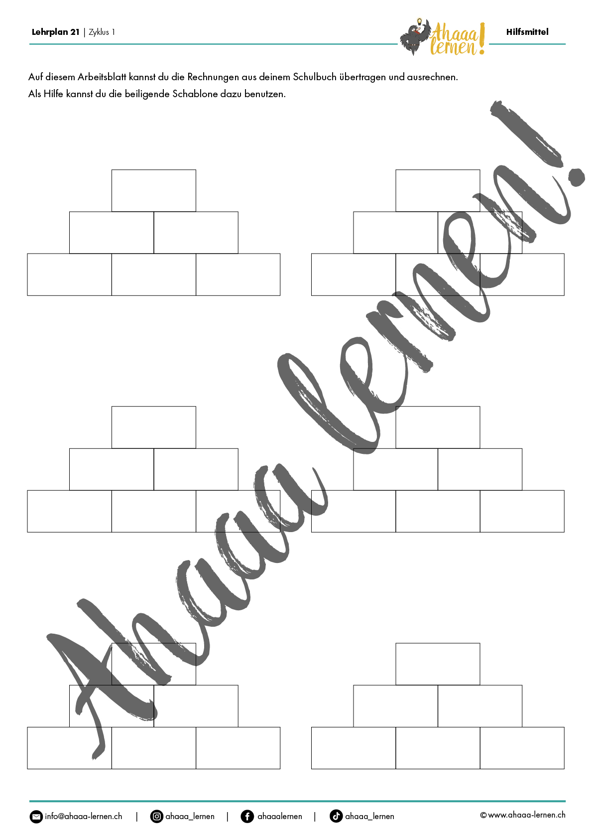 Die Schablone ist so konzipiert, dass sie auf die jeweiligen Vorlagen passt. Somit können die Kinder ihre Aufgaben übertragen und mittels der Schablone bearbeiten und lösen.