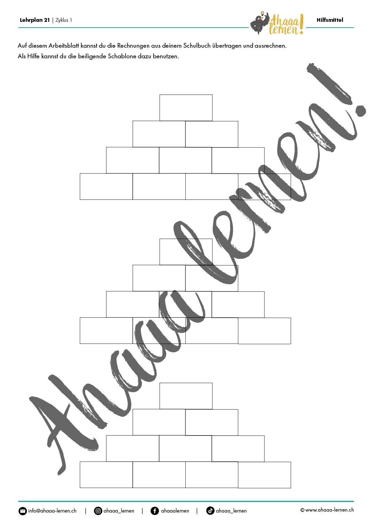 Es gibt immer wieder Schülerinnen und Schüler, die sich im Raum verlieren. Dazu dient diese Schablone plus dazugehörige vorgegebene Zahlenmauern in verschiedenen Grössen.